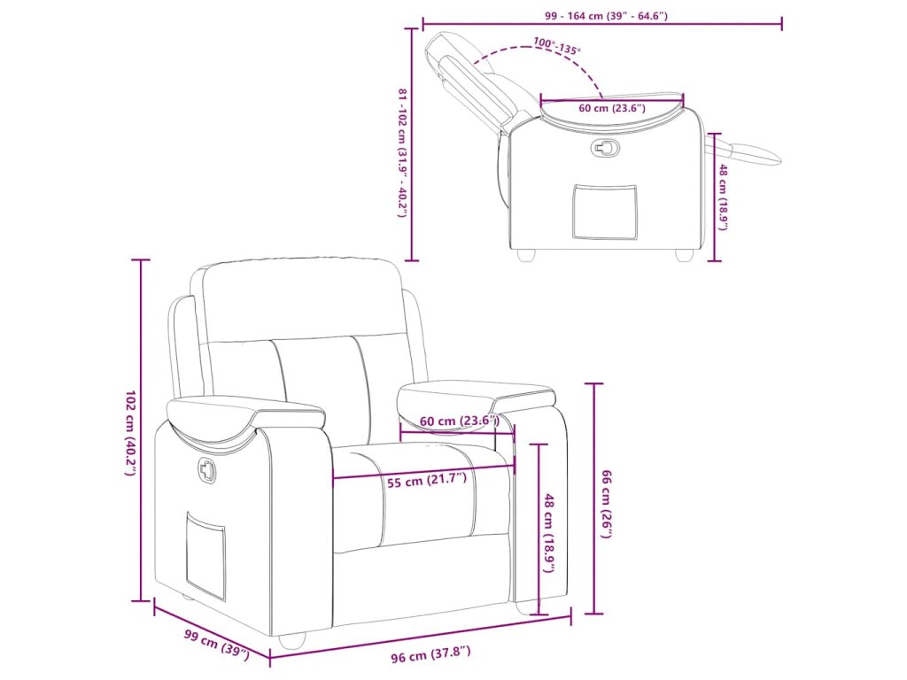 - Funkce ručního sklápění: Toto polohovací křeslo má na pravé straně páčku. Jednoduchým zatažením za páčku můžete ručně nastavit opěrku nohou a opěradlo do libovolné polohy podle svého pohodlí. Tato funkce umožňuje maximální náklon 135 stupňů. Opěradlo se navíc může snadným zatažením za páčku rychle vrátit do původní polohy.