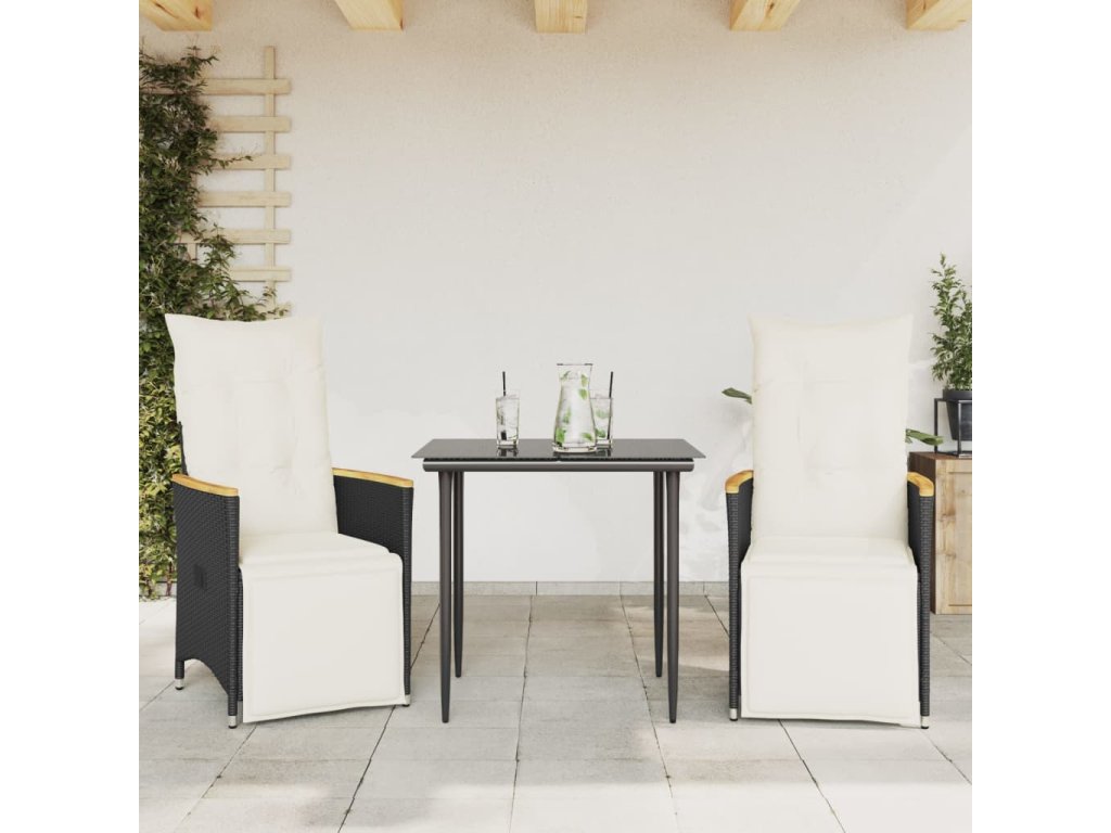 - Materiál: PE ratan, práškově lakovaná ocel, masivní akáciové dřevo s olejovou povrchovou úpravou