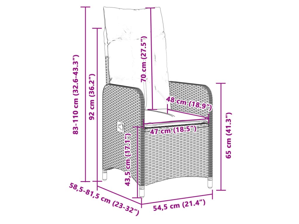 - Rozměry sklopeného křesla: 54,5 x 81,5 x 83 cm (Š x H x V)