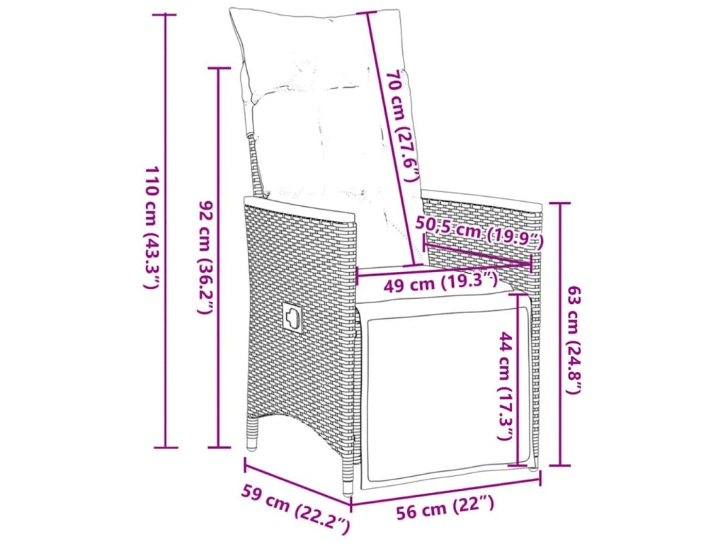 - Rozměry při poloze vsedě: 56 x 59 x 92 cm (Š x H x V)