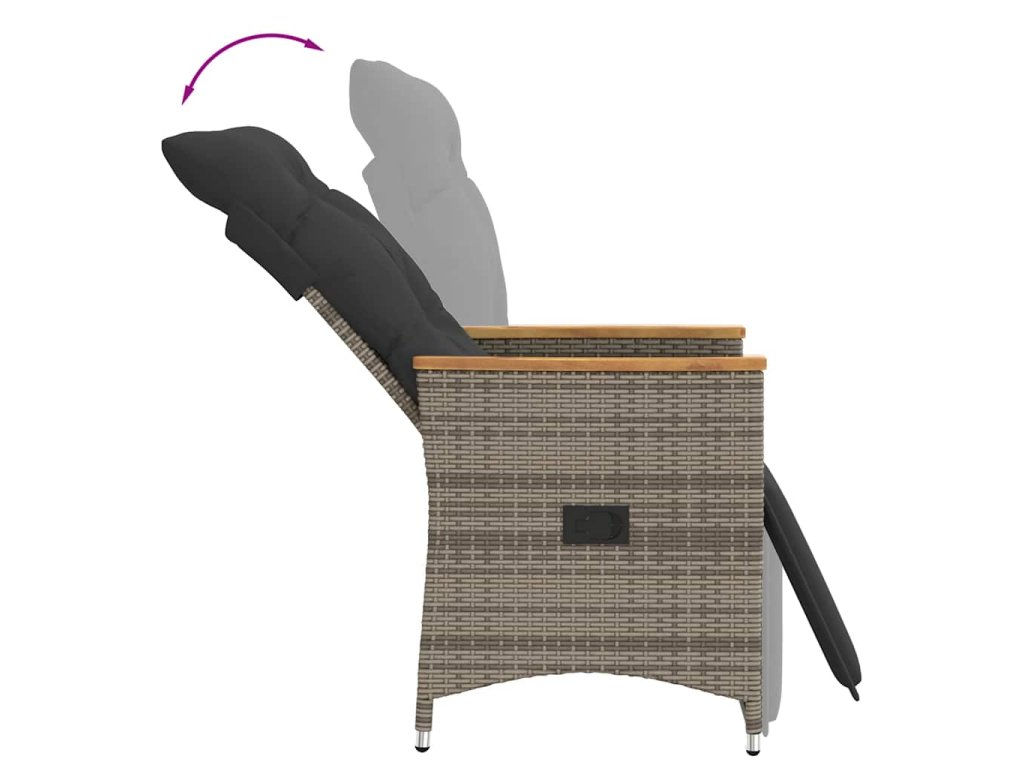 - Materiál: PE ratan, práškově lakovaná ocel, masivní akáciové dřevo s olejovou povrchovou úpravou