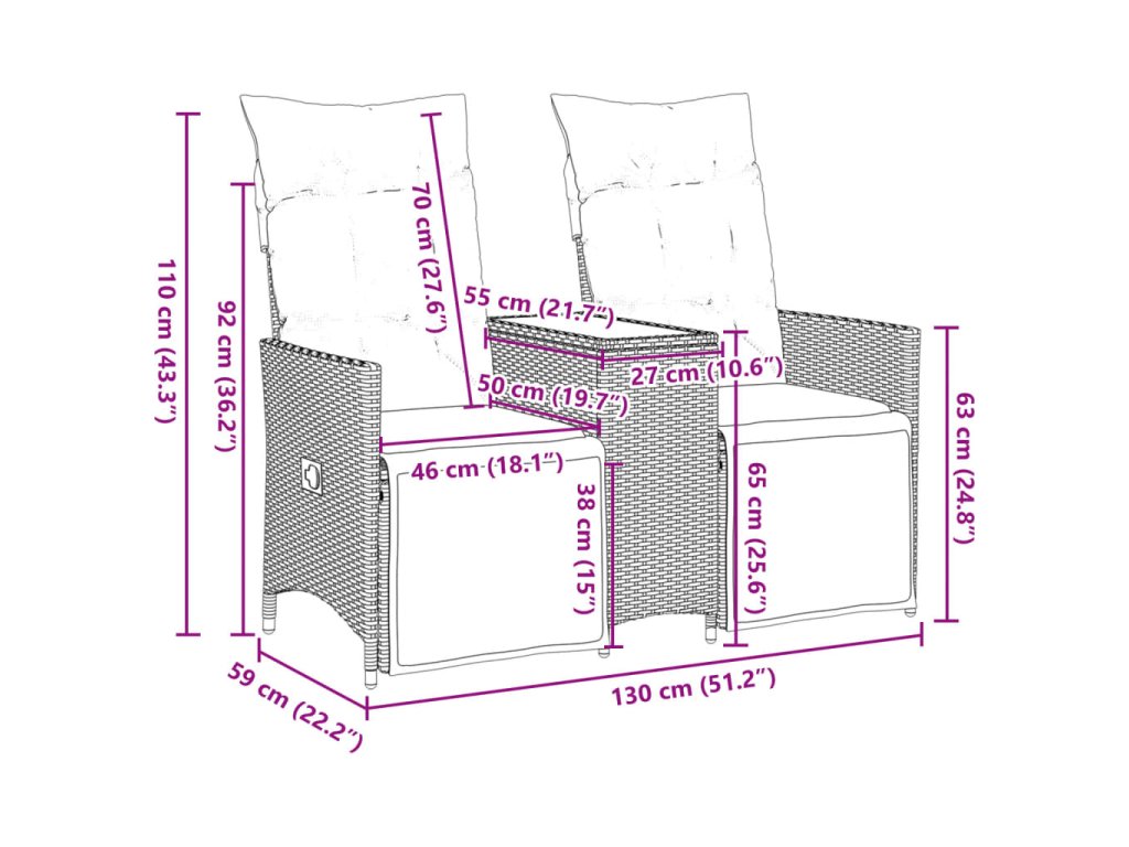 - Pohodlný středový stolek: Tento venkovní nábytek je vybaven integrovaným středovým stolkem, který vám poskytne praktické místo, kam si můžete odložit vaše nezbytnosti a mít je na dosah ruky.