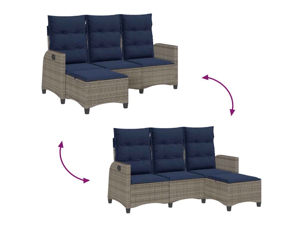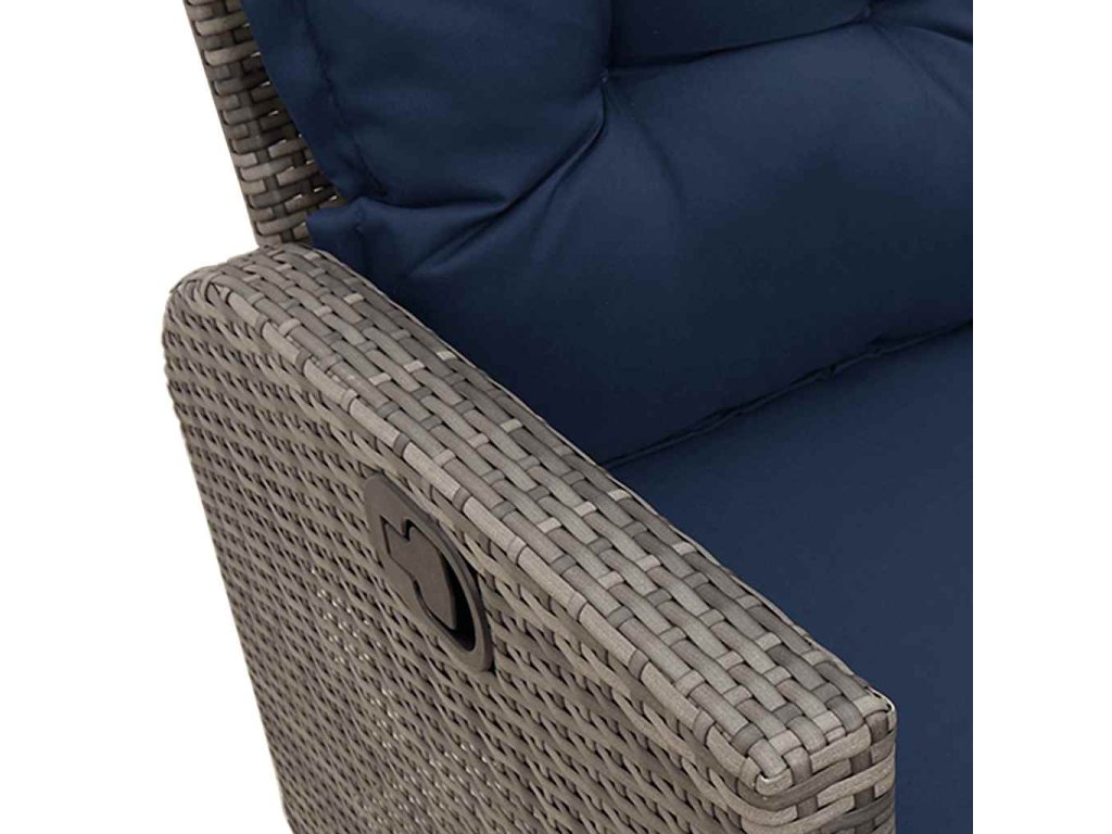 - Nastavitelné opěradlo: Tento venkovní nábytek má na každém sedadle rukojeť. Zatáhnutím za ni můžete opěradlo nastavit do libovolné polohy a stejně tak ho můžete rychle vrátit do původní pozice.