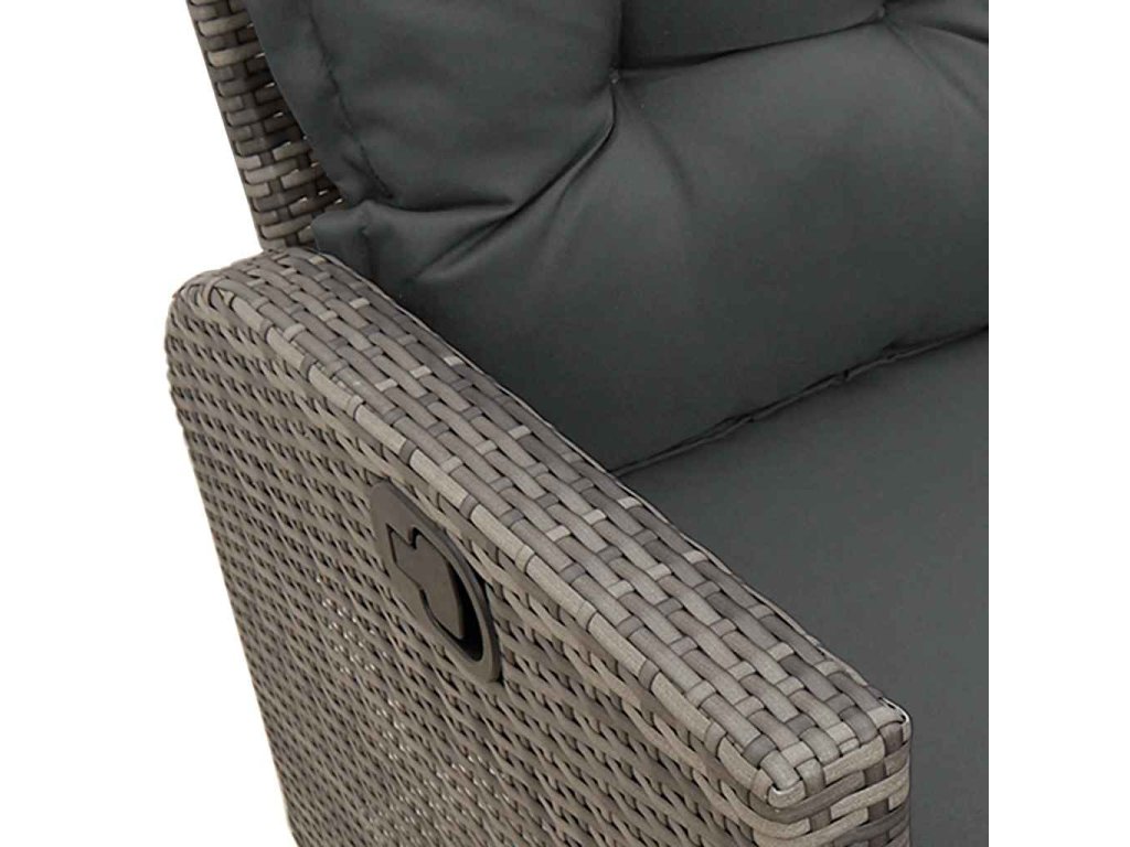 - Nastavitelné opěradlo: Tento venkovní nábytek má na každém sedadle rukojeť. Zatáhnutím za ni můžete opěradlo nastavit do libovolné polohy a stejně tak ho můžete rychle vrátit do původní pozice.