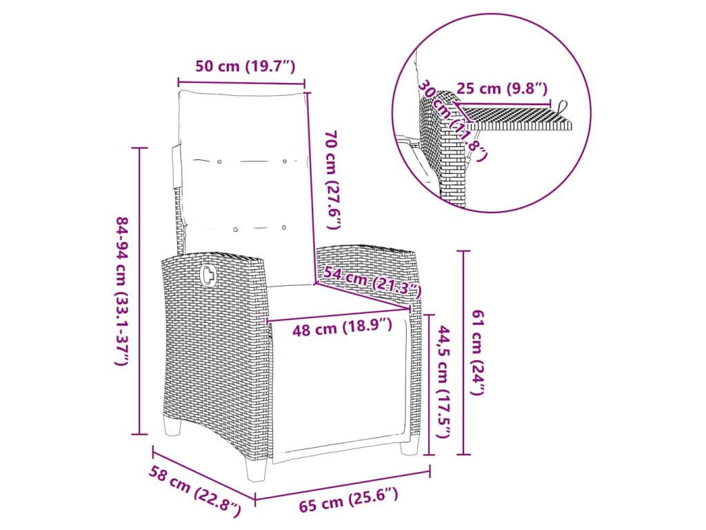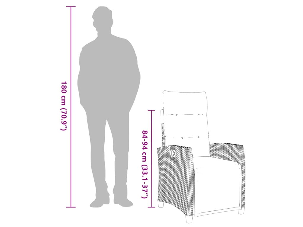 - Nastavitelné opěradlo a opěrka nohou: Tato zahradní židle je opatřena rukojetí. Zatáhnutím za ni můžete opěradlo a opěrku nohou nastavit do libovolné polohy. Stejně tak je můžete rychle vrátit do původní pozice.