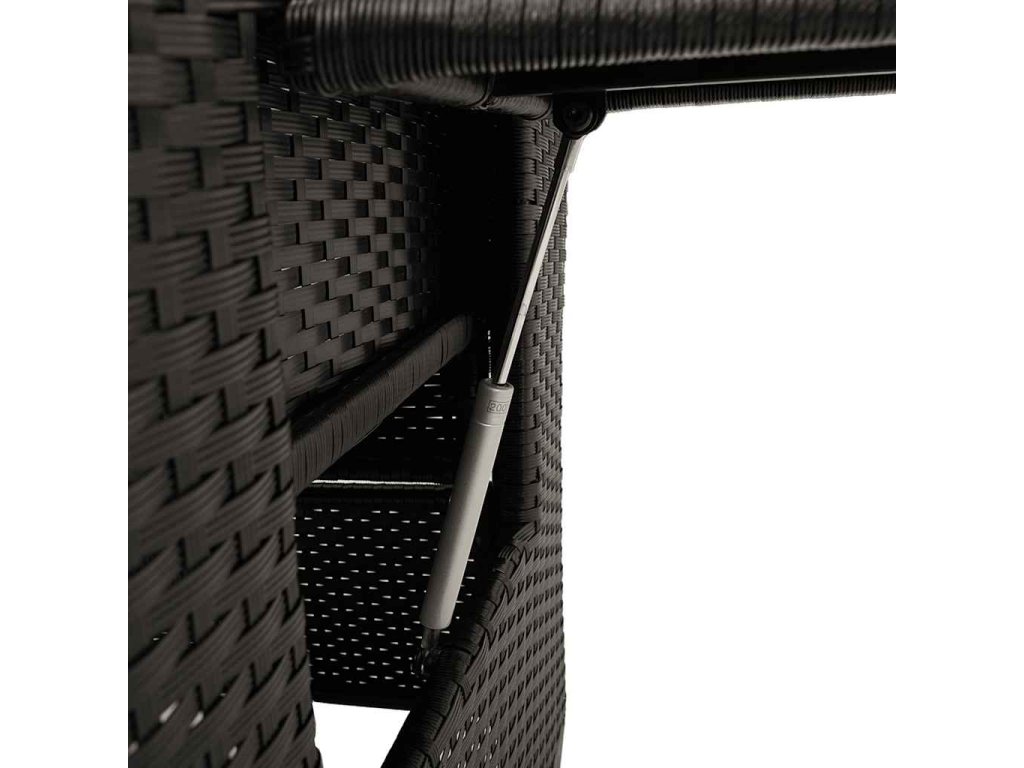- Pohodlný odkládací stolek: Tento venkovní nábytek má na područce skládací stolek s plynovou pružinou, jež poskytuje praktické místo pro vaše nezbytnosti, kde je budete mít na dosah ruky.