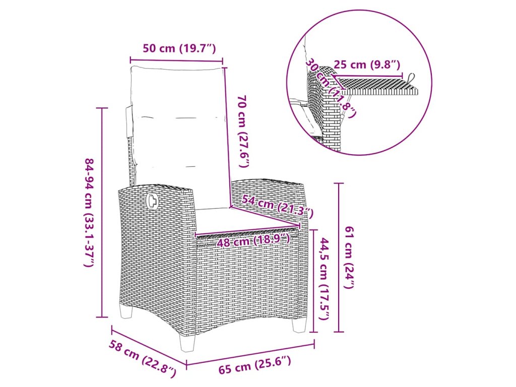 - Nastavitelné opěradlo: Tato zahradní židle je opatřena rukojetí. Opěradlo můžete nastavit do libovolné polohy zatažením za rukojeť a rychle je vrátit do původní polohy.