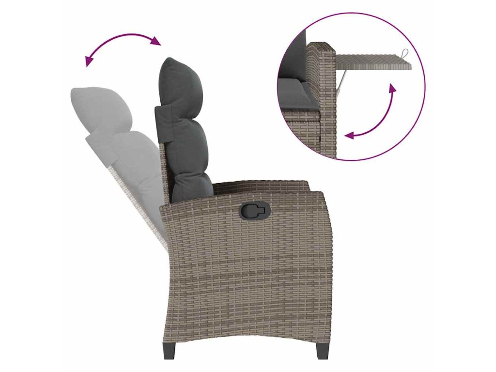 - Pohodlný odkládací stolek: Tento venkovní nábytek má na područce skládací stolek s plynovou pružinou, jež poskytuje praktické místo pro vaše nezbytnosti, kde je budete mít na dosah ruky.