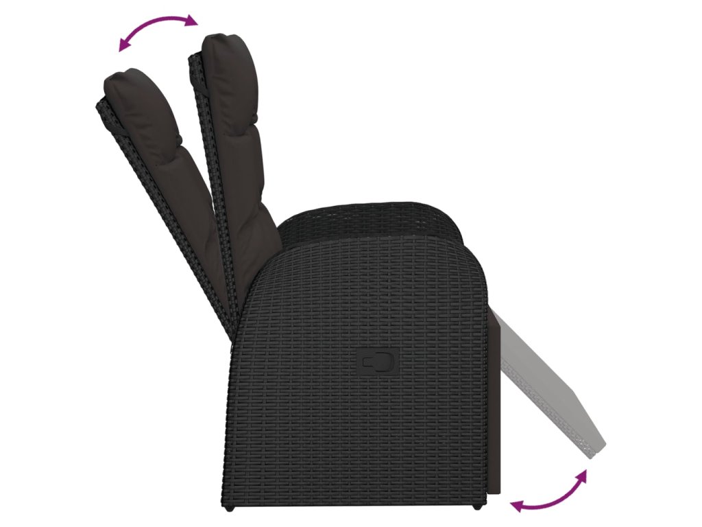 Nastavitelné opěradlo a podnožka vám umožní se pohodlně usadit a naplno relaxovat. Zahradní křeslo je vyrobeno z PE ratanu, který je odolný vůči klimatickým vlivům. Křeslo se snadno čistí, je solidní a odolné a vhodné pro každodenní použití. Ocelový rám s práškovým nástřikem zajišťuje, že je křeslo velmi pevné a trvanlivé. Naše polohovací křeslo vám poskytne veškeré pohodlí, jaké si můžete přát. Opěradlo lze sklopit zatažením za tlačítko na boční straně křesla. Lehká konstrukce umožňuje snadné přesouvání a skladování, když nábytek nepoužíváte. Spolu s křeslem obdržíte také mimořádně pohodlnou, silně polstrovanou podušku na sedák, jež se postará o vaše naprosté pohodlí. Polyesterový potah nevyžaduje žádnou náročnou údržbu a lze jej snadno sejmou a vyprat. Sestavení křesla je jednoduché.
