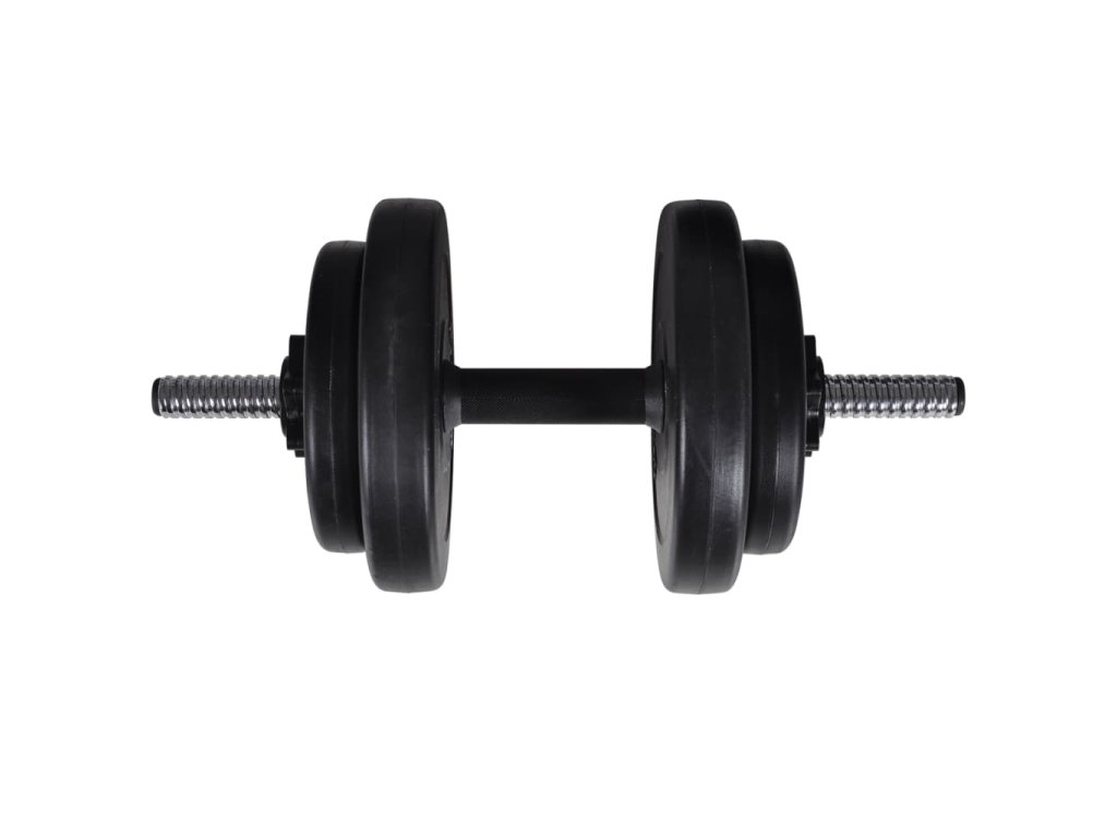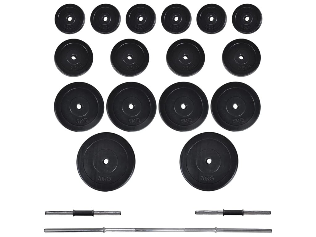 Sada činek barbell a dumbbell obsahuje silné pochromované činkové tyče s rychloupínací pružinovou objímkou (pro tyč barbell), neklouzavé rýhované rukojeti a vroubkované hvězdicové uzávěry (pro tyče dumbbell), které zajišťují bezpečné upevnění zátěžových kotoučů. Můžete tak cvičit bez obav o vaše bezpečí. Zátěžové kotouče jsou vyrobeny s robustním vrchním pláštěm z polyetylenu. Dají se kombinovat různými způsoby tak, aby vyhovovaly různým tréninkovým účelům.
