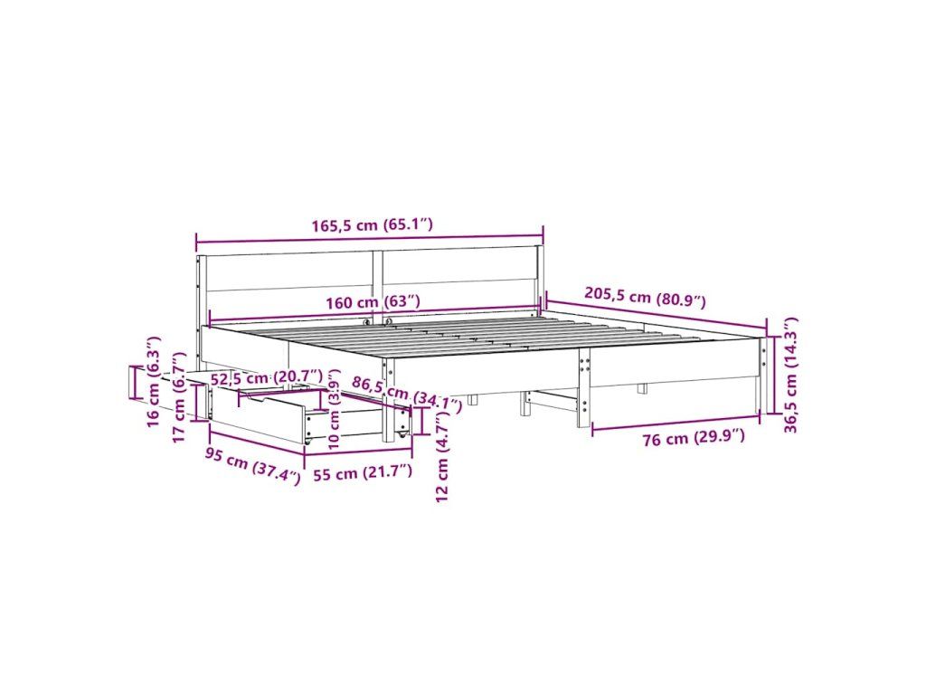 - Plně využijte prostor: Tento rám postele je vybaven dvěma zásuvkami, které poskytují úložný prostor pro uschování lůžkovin, sezónního oblečení a hraček.