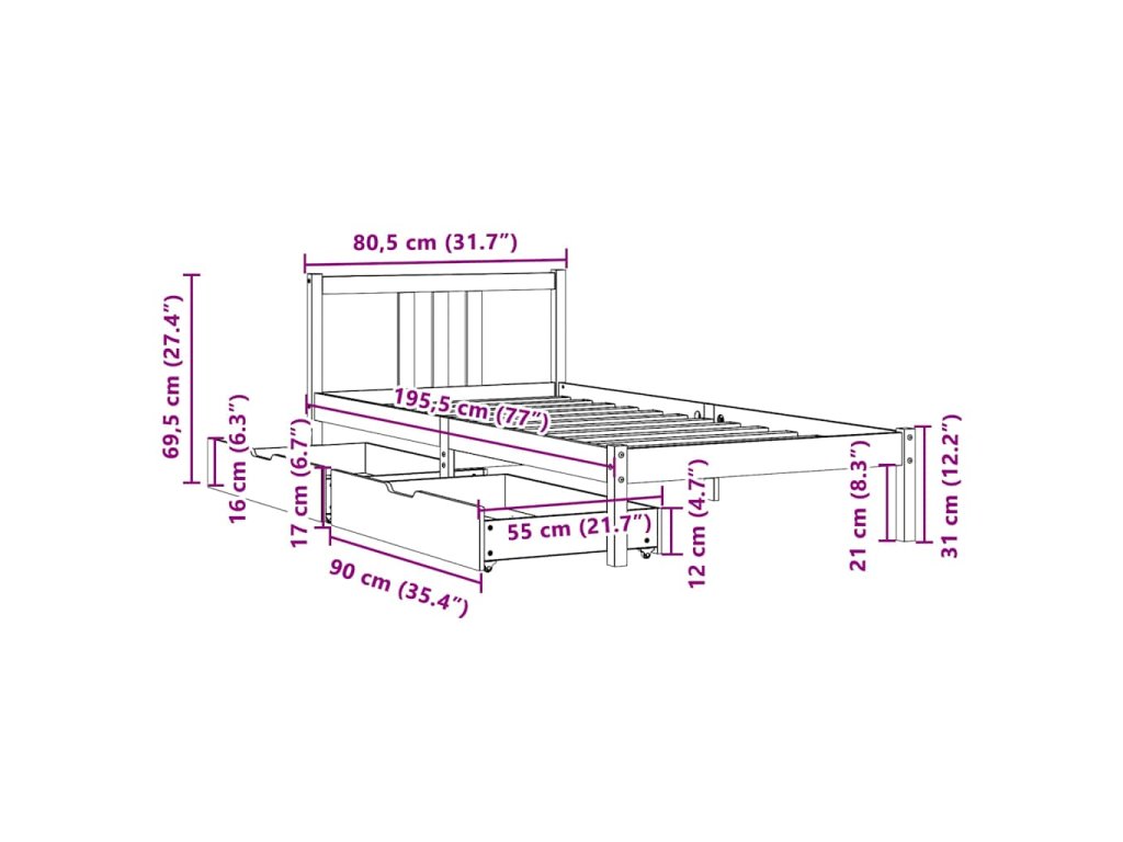 - Plně využijte prostor: Tento rám postele je vybaven dvěma zásuvkami, které poskytují úložný prostor pro uschování lůžkovin, sezónního oblečení a hraček.