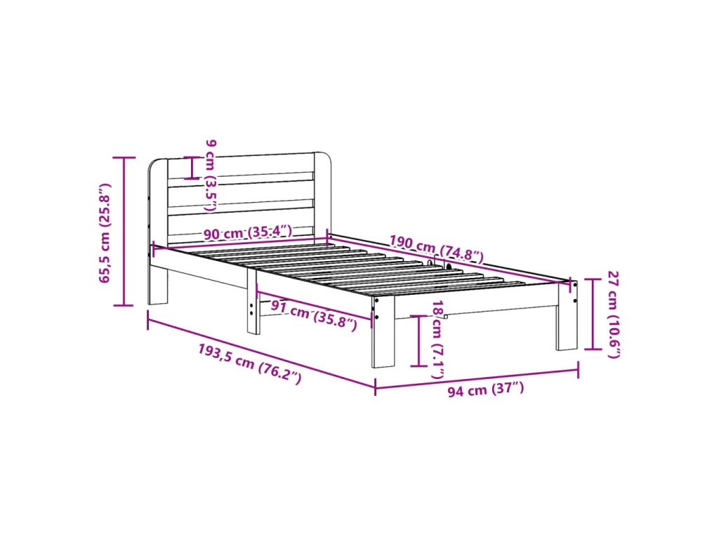 - Vhodné rozměry matrace: 90 x 190 cm (Š x D) (matrace není součástí balení)
