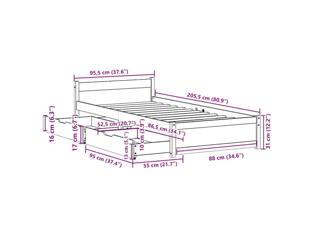 - Plně využijte prostor: Tento rám postele je vybaven dvěma zásuvkami, které poskytují úložný prostor pro uschování lůžkovin, sezónního oblečení a hraček.