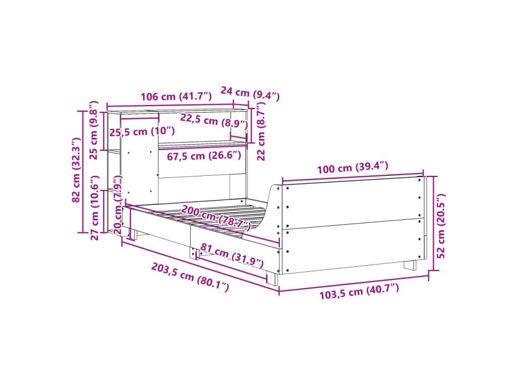 - Vhodné rozměry matrace: 100 x 200 cm (Š x D) (matrace není součástí balení)