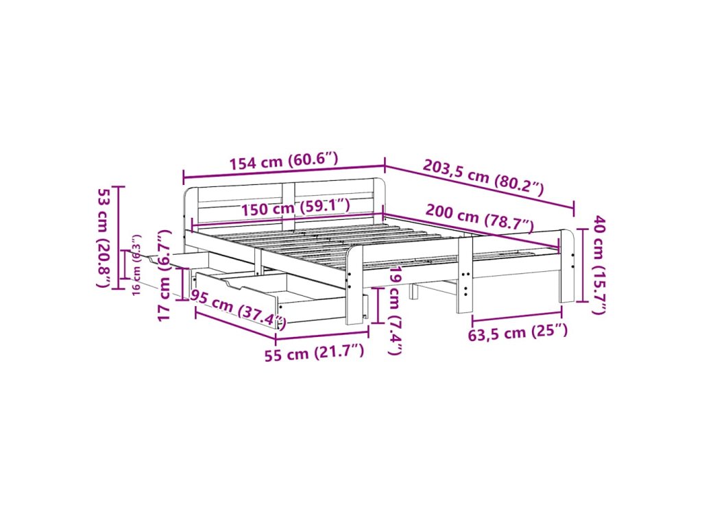- Plně využijte prostor: Tato základna postele je vybavena dvěma zásuvkami, které poskytují úložný prostor pro uschování lůžkovin, sezónního oblečení a hraček.