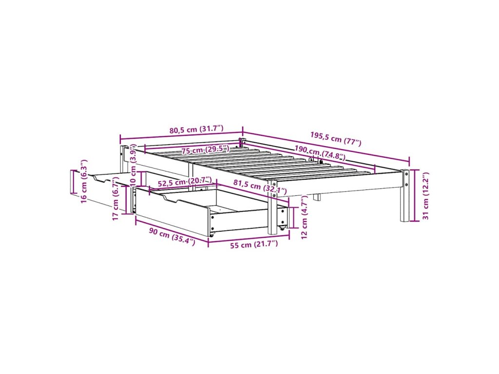 - Plně využijte prostor: Tento rám postele je vybaven dvěma zásuvkami, které poskytují úložný prostor pro uschování lůžkovin, sezónního oblečení a hraček.