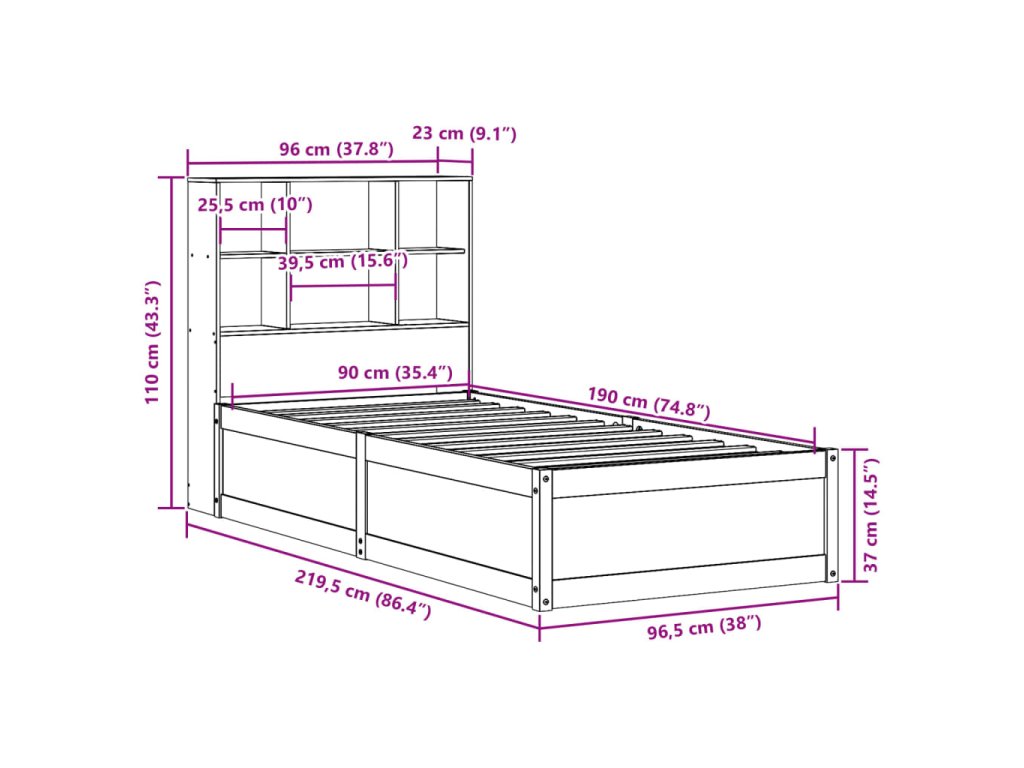 - Vhodné rozměry matrace: 90 x 190 cm (Š x D) (matrace není součástí balení)