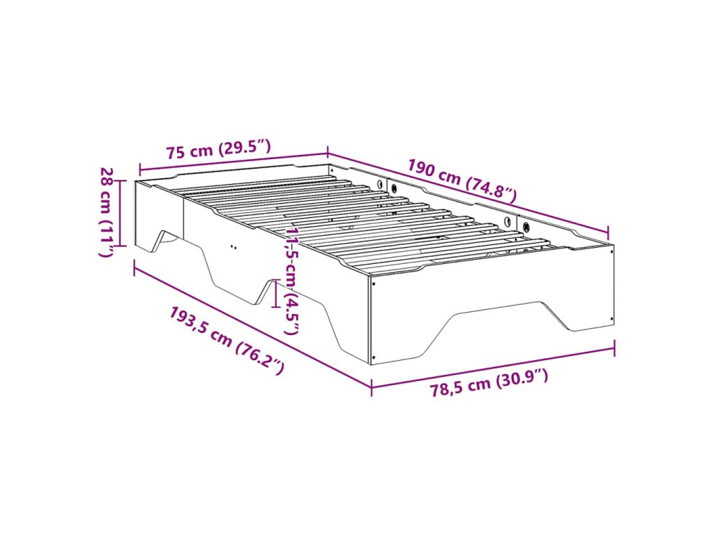 - Vhodné rozměry matrace: 75 x 190 cm (Š x D) (matrace není součástí balení)