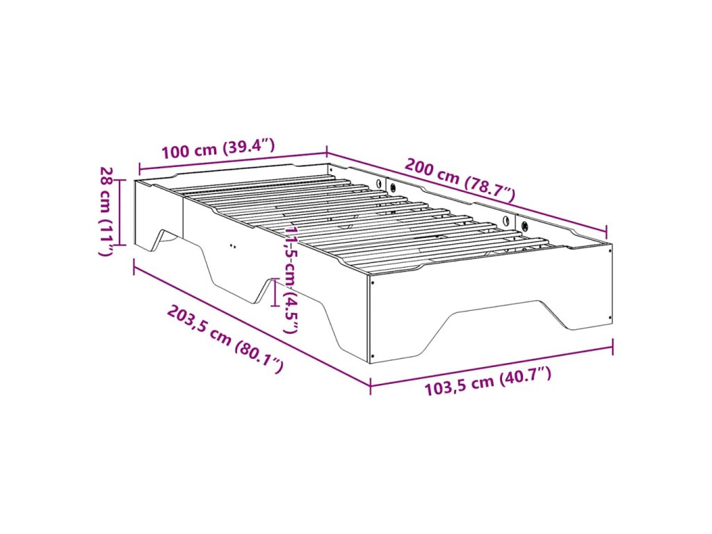 - Rozměry: 203,5 x 103,5 x 28 cm (D x Š x V)