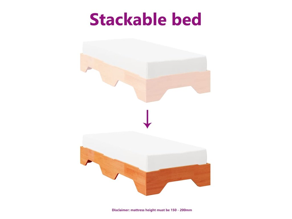 Tento dřevěný stohovatelný rám postele představuje praktické a prostorově úsporné řešení pro každou domácnost.