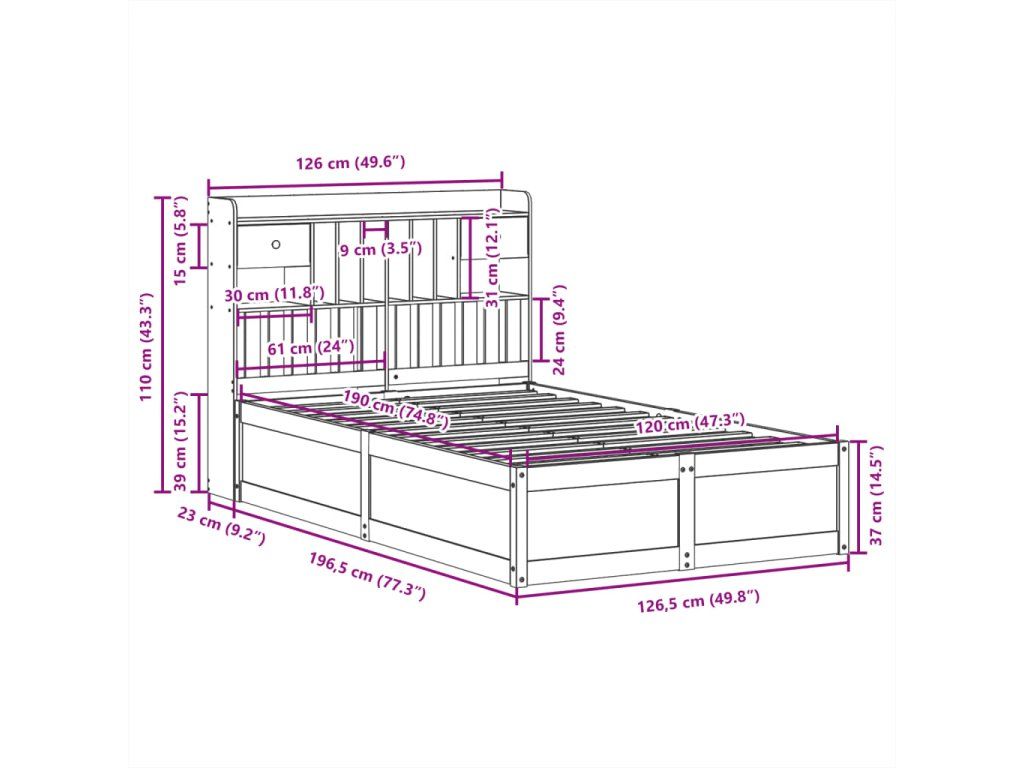 - Rozměry čela postele: 126 x 23 x 110 cm (D x Š x V)