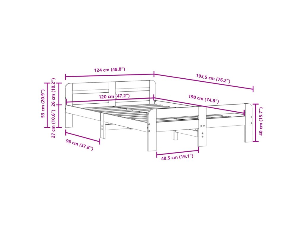 - Celkové rozměry postele: 193,5 x 124 x 53 cm (D x Š x V)