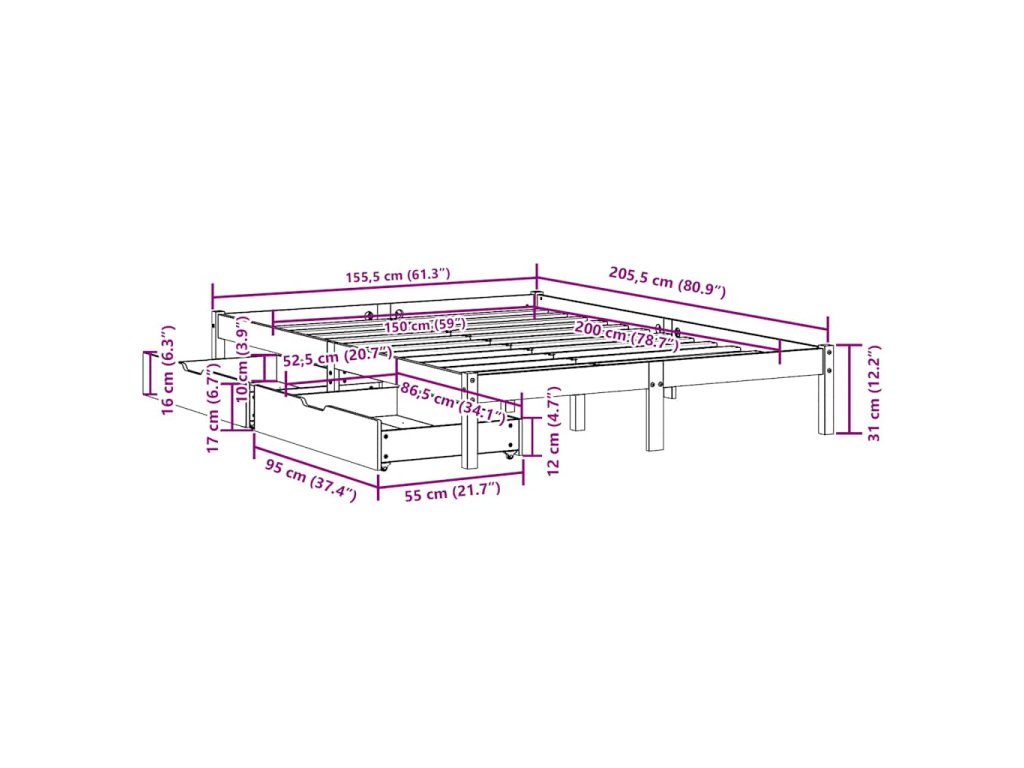 - Plně využijte prostor: Tento rám postele je vybaven dvěma zásuvkami, které poskytují úložný prostor pro uschování lůžkovin, sezónního oblečení a hraček.