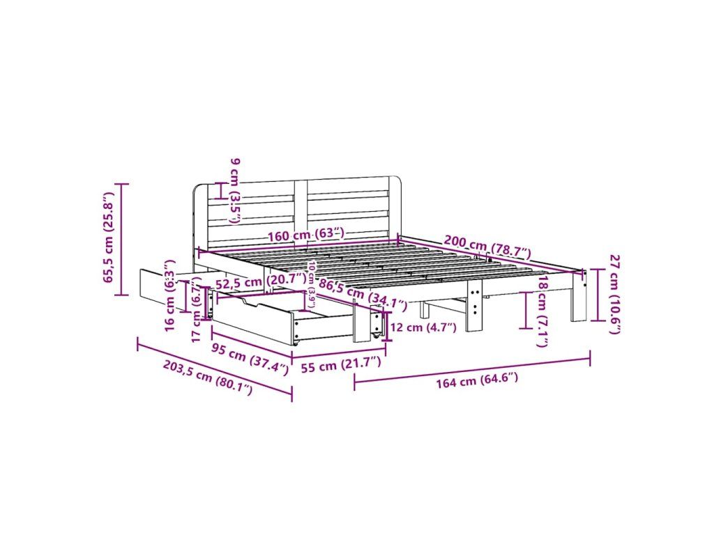 - Rozměry: 203,5 x 164 x 65,5 cm (D x Š x V)