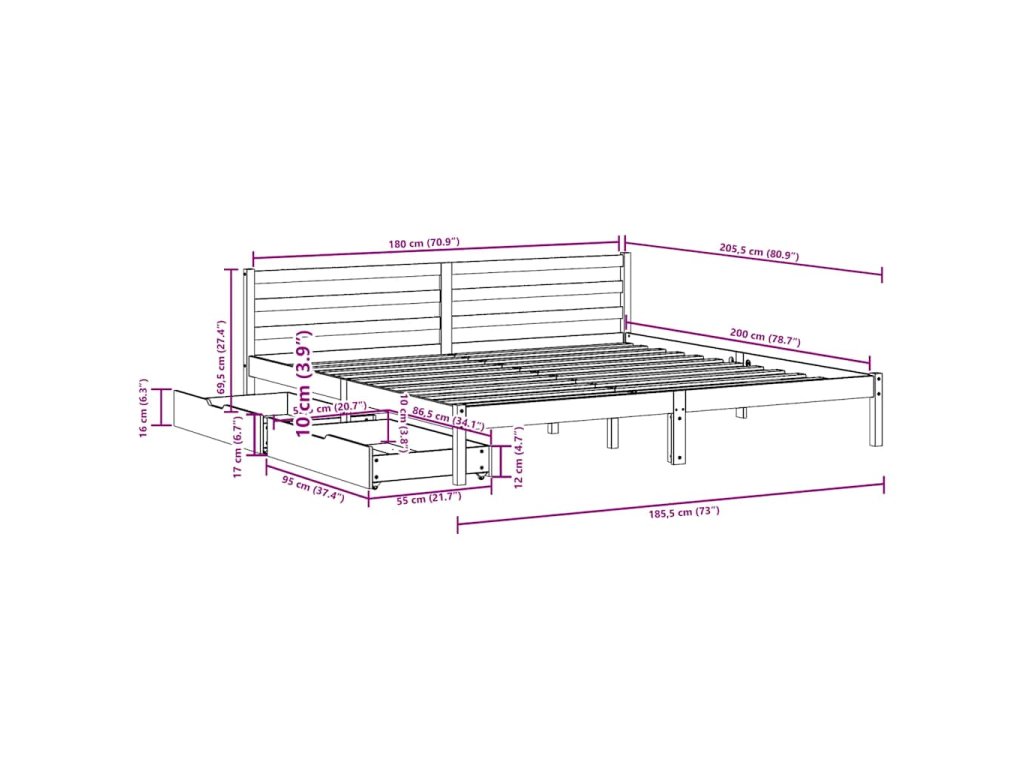 - Plně využijte prostor: Tento rám postele je vybaven dvěma zásuvkami, které poskytují úložný prostor pro uschování lůžkovin, sezónního oblečení a hraček.