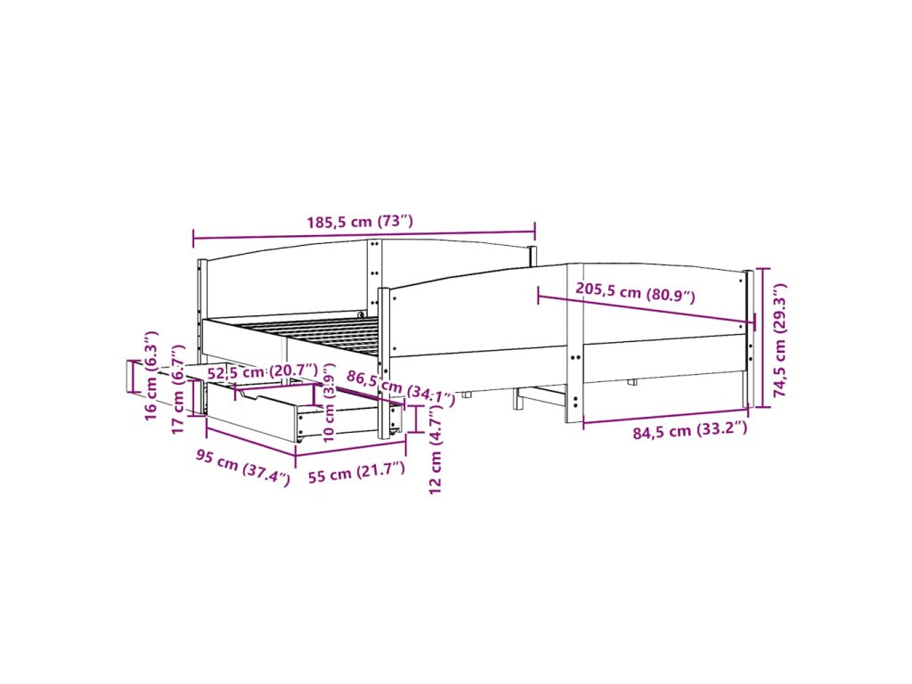 - Plně využijte prostor: Tento rám postele je vybaven dvěma zásuvkami, které poskytují úložný prostor pro uschování lůžkovin, sezónního oblečení a hraček.