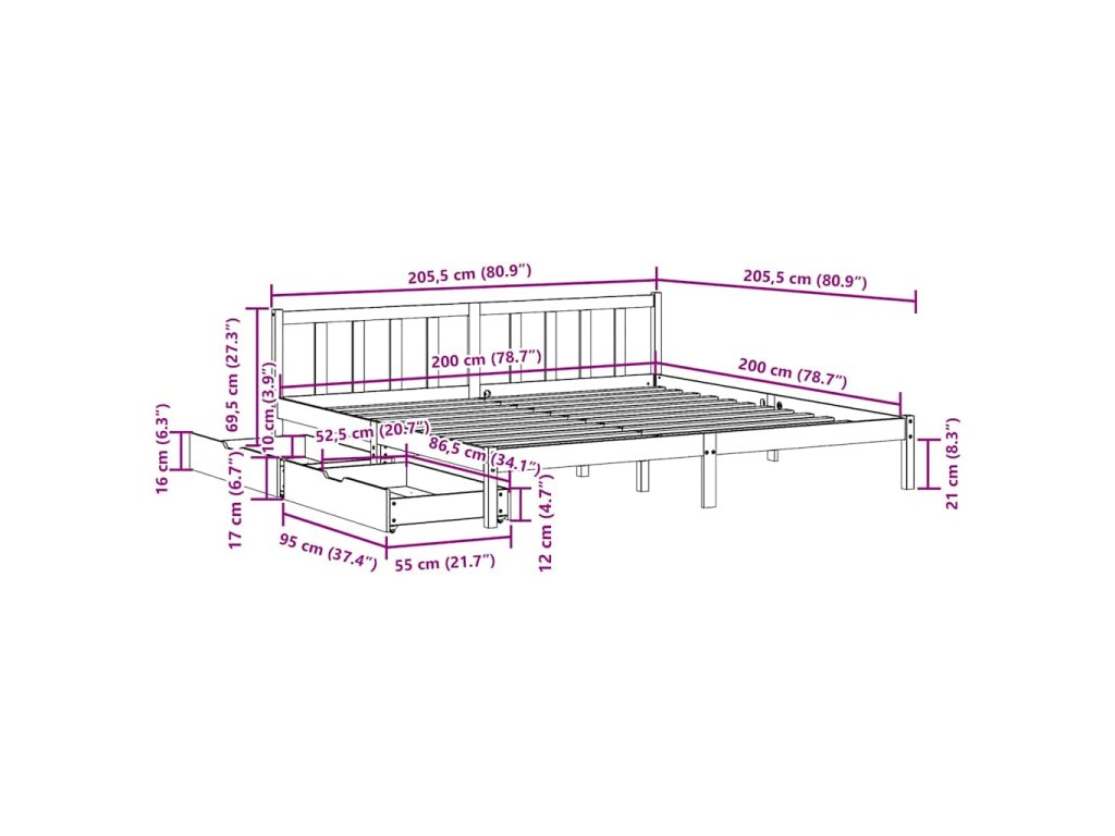 - Plně využijte prostor: Tento rám postele je vybaven dvěma zásuvkami, které poskytují úložný prostor pro uschování lůžkovin, sezónního oblečení a hraček.
