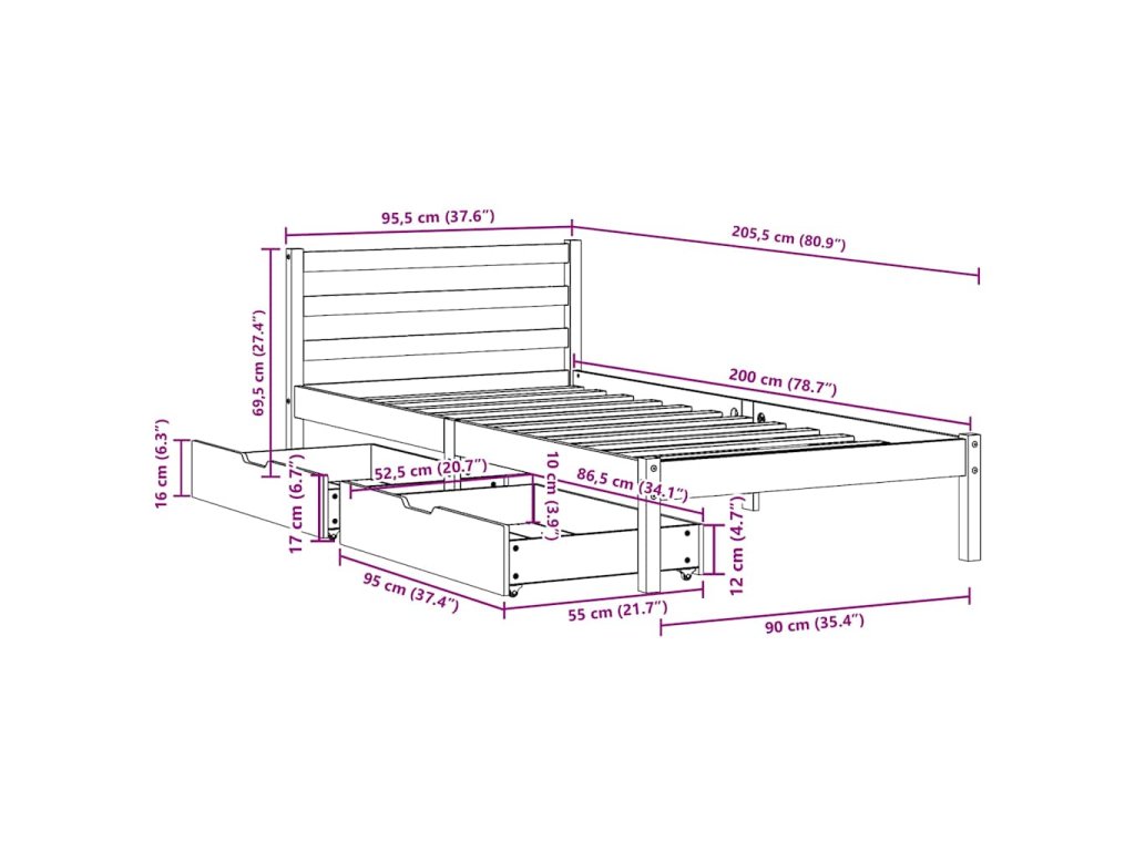 - Plně využijte prostor: Tento rám postele je vybaven dvěma zásuvkami, které poskytují úložný prostor pro uschování lůžkovin, sezónního oblečení a hraček.