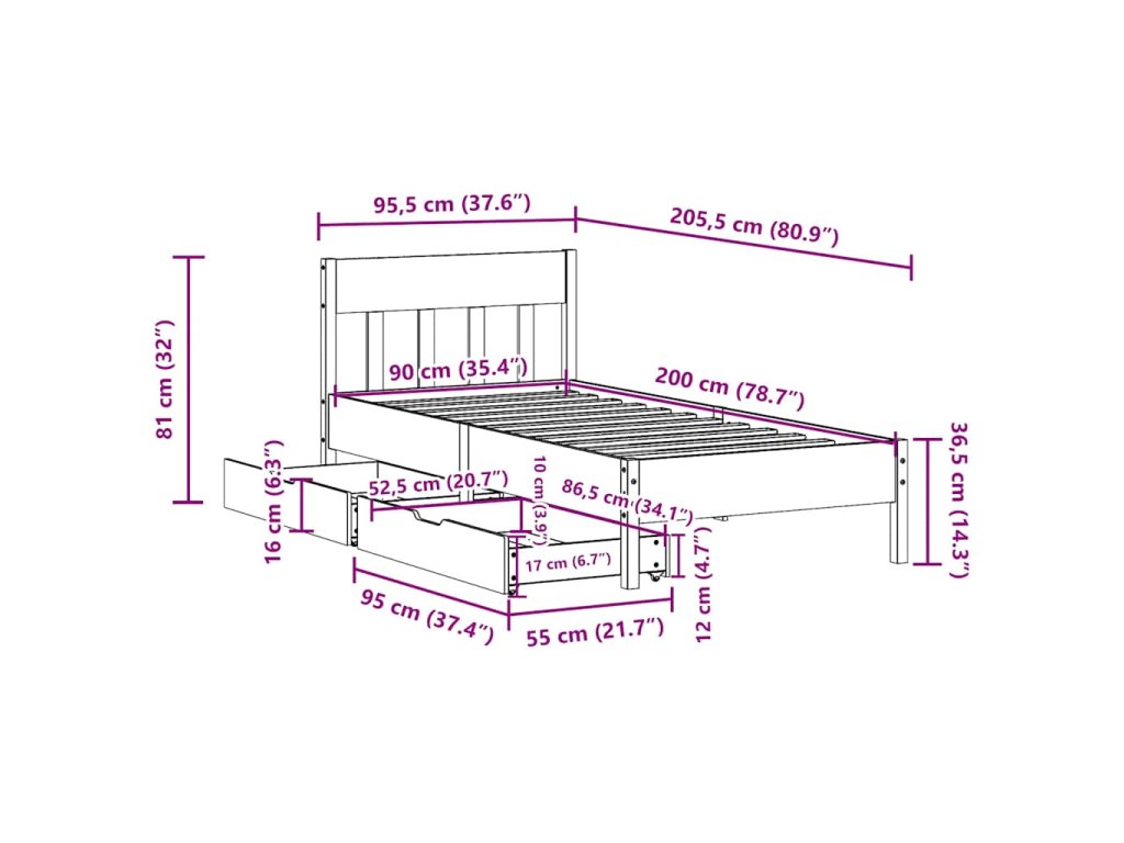 - Plně využijte prostor: Tento rám postele je vybaven dvěma zásuvkami, které poskytují úložný prostor pro uschování lůžkovin, sezónního oblečení a hraček.