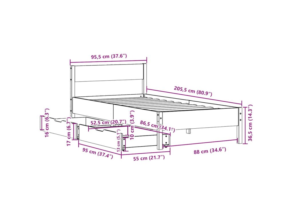 - Plně využijte prostor: Tento rám postele je vybaven dvěma zásuvkami, které poskytují úložný prostor pro uschování lůžkovin, sezónního oblečení a hraček.