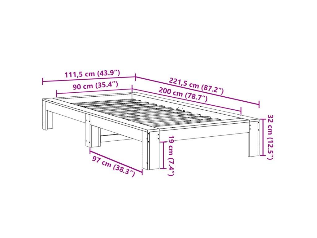 - Rozměry: 221,5 x 111,5 x 32 cm (D x Š x V)