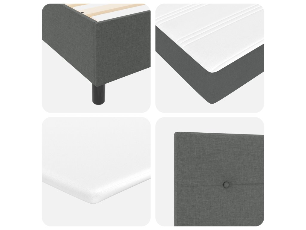 Tato postel s boxspringem kombinuje styl a praktičnost a je ideální volbou pro jakoukoliv dospělou ložnici. Působivý tmavě šedý design a pevné borové nohy vytvářejí moderní atmosféru, která je jak příjemná, tak stylová. Garantuje příjemný spánek a zároveň zlepší vzhled vaší místnosti.