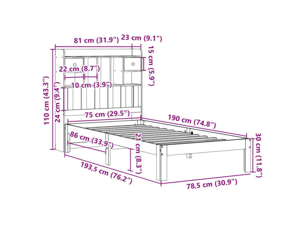 - Celkové rozměry: 193,5 x 78,5 x 30 cm (D x Š x V)