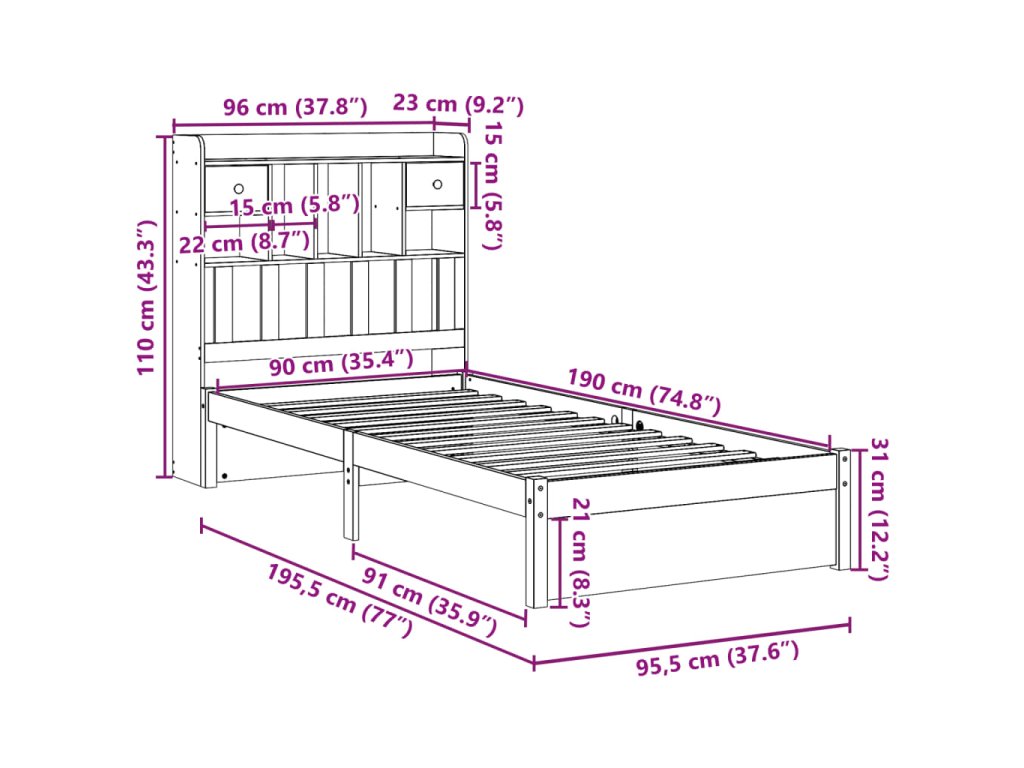 - Vhodné rozměry matrace: 90 x 190 cm (Š x D) (matrace není součástí balení)