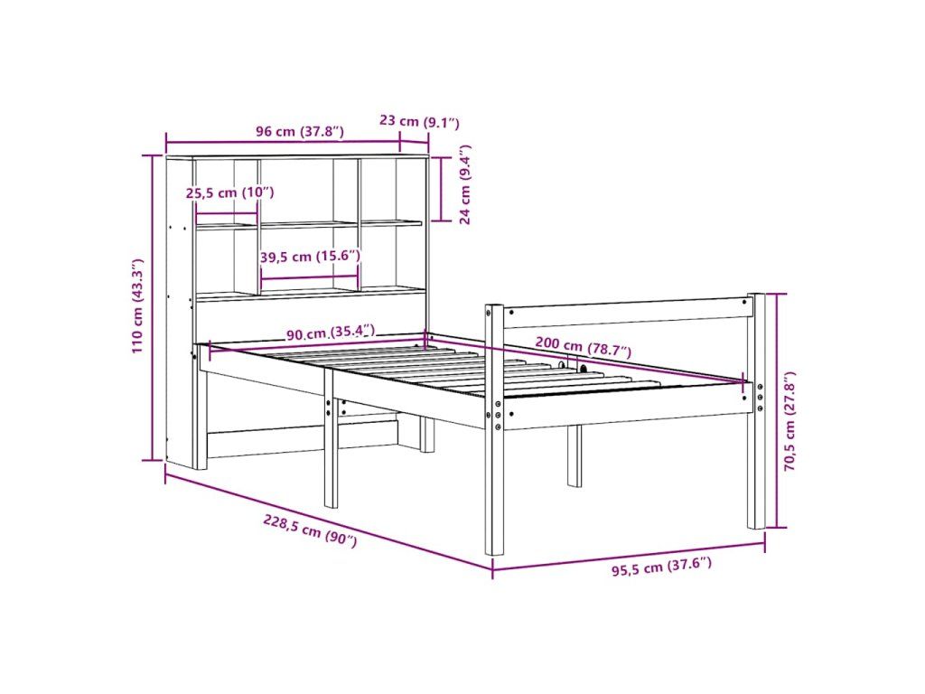 - Vhodné rozměry matrace: 90 x 200 cm (Š x D) (matrace není součástí balení)