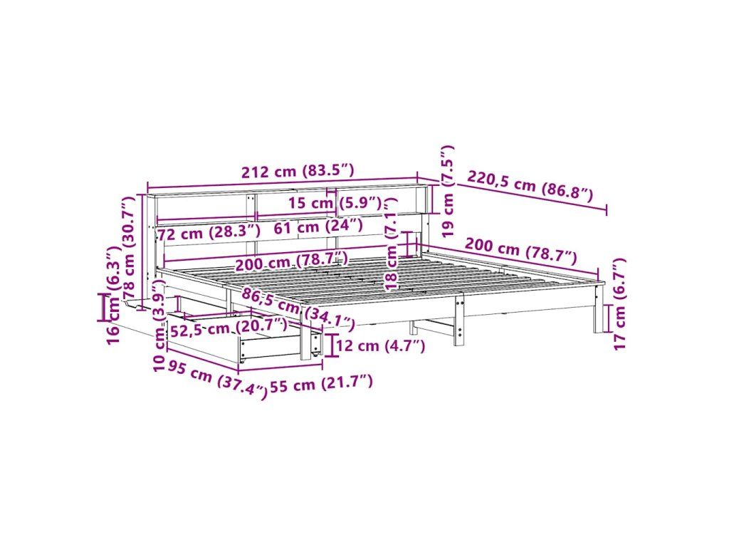 - Rozměry: 220,5 x 212 x 78 cm (D x Š x V)