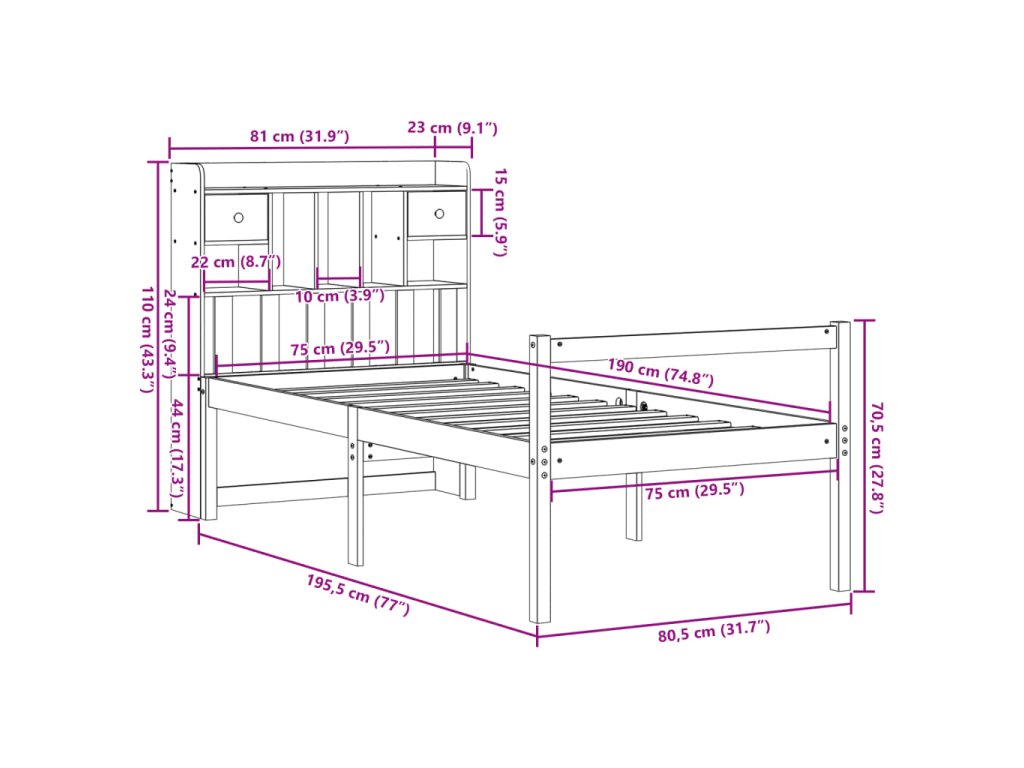- Vhodné rozměry matrace: 75 x 190 cm (Š x D) (matrace není součástí balení)