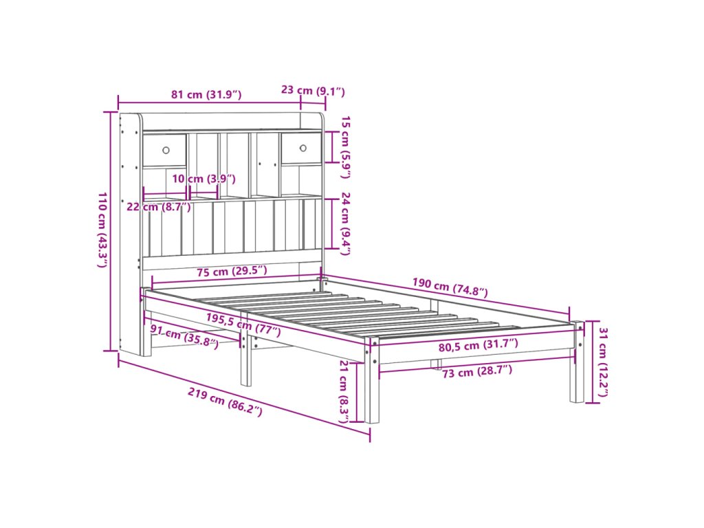 - Vhodné rozměry matrace: 75 x 190 cm (Š x D) (matrace není součástí balení)