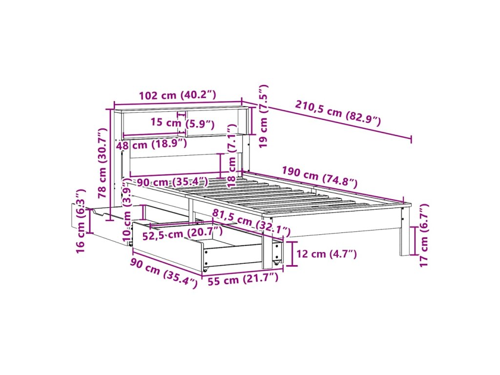 - Vhodné rozměry matrace: 90 x 190 cm (Š x D) (matrace není součástí balení)
