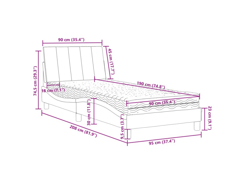 - Celkové rozměry: 90 x 190 x 17 cm (Š x D x T)