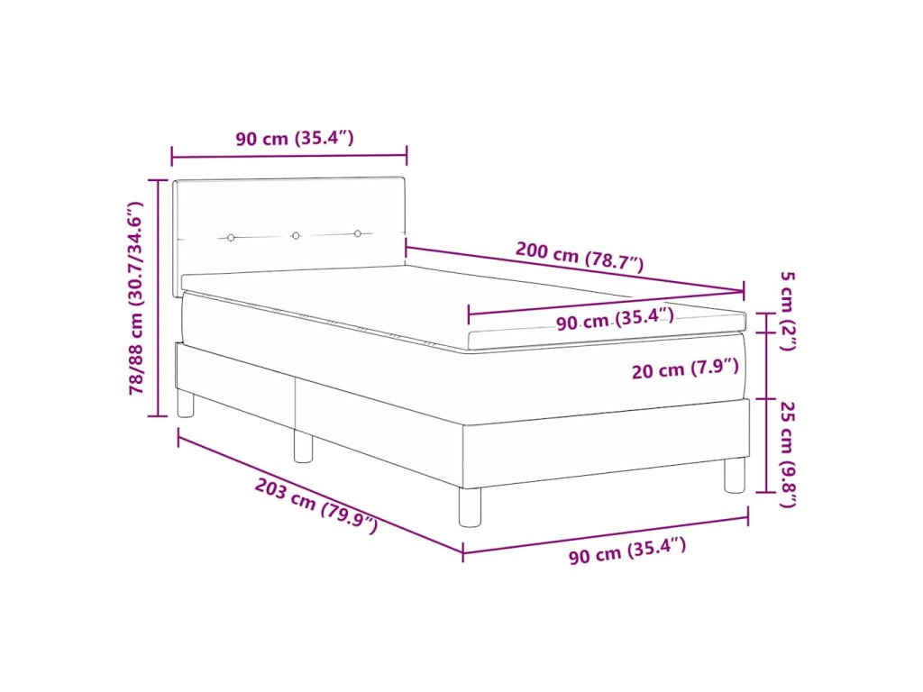 - Velikost matrace: Jednolůžko (90 cm x 200 cm nebo 35" x 79")