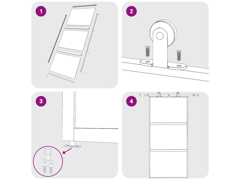 - Způsob instalace je vysvětlen v našem instalačním manuálu ke dveřím a sadám příslušenství.
