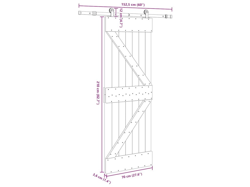 - Rozměry: 70 x 3,6 x 210 cm (Š x H x V)