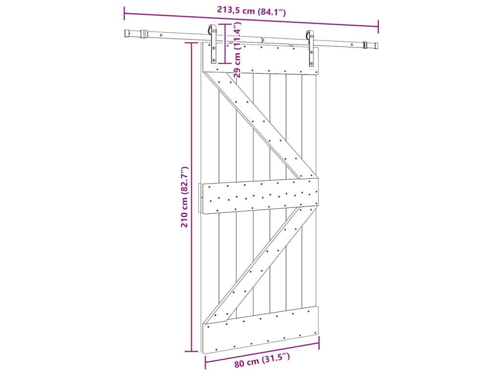 - Rozměry: 80 x 3,6 x 210 cm (Š x H x V)