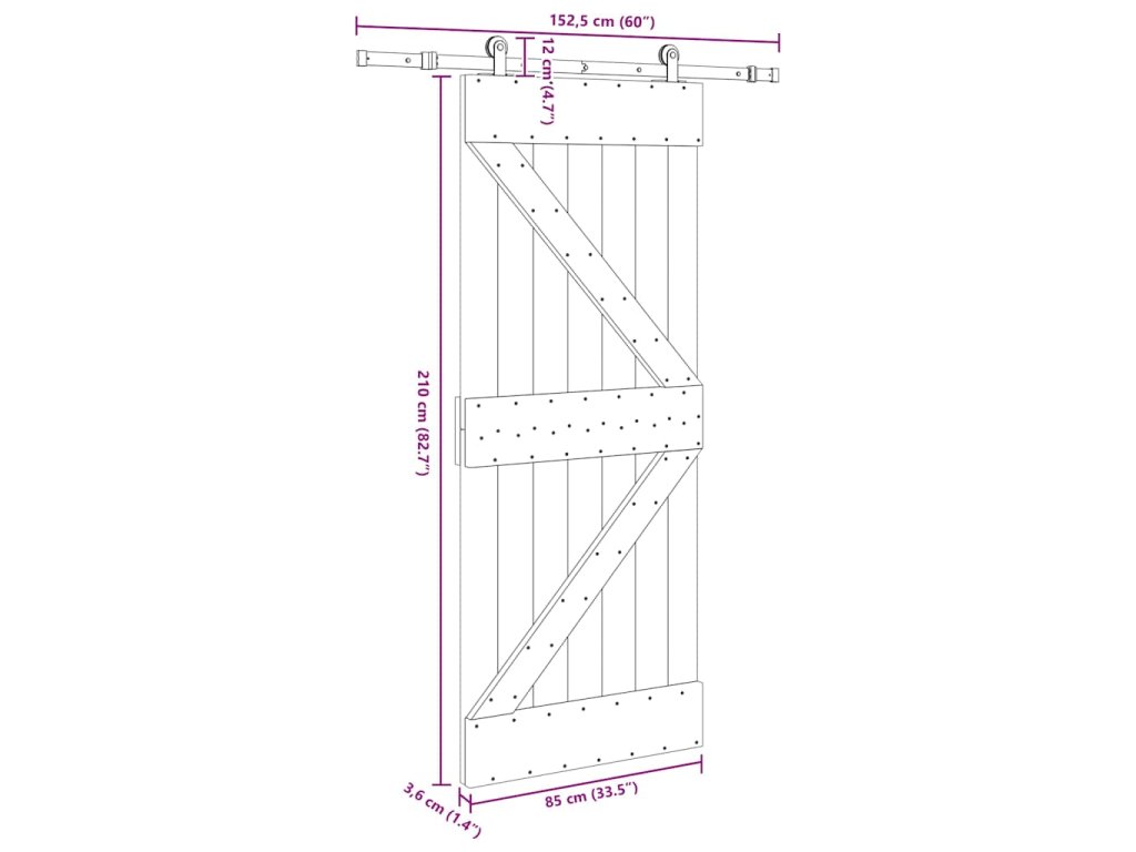 - Rozměry: 85 x 3,6/5,4 x 210 cm (Š x H x V)